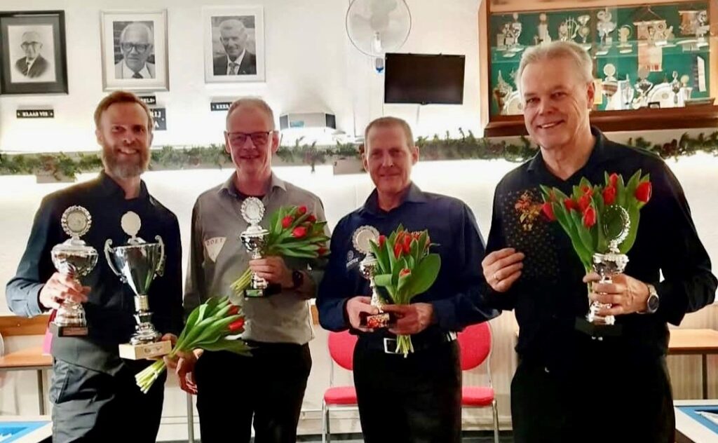 Er werd geloot voor de kwartfinales: Germ Bot – David Bron, Ad Ketels – Wil Kuin, Rob Kok – Martin de Gier en Dirkjan Kok tegen Matthieu Vlam. De 4 winnaars gaan door naar de halve finale. Dit werden Ad, Germ, Martin en Matthieu. Opnieuw loten voorde halve finale: Ad tegen Germ en Martin tegen Matthieu. Opnieuw liet Germ zijn kwaliteiten in het zgn. neo-kader zien. Het biljart is dan verdeeld in 4 vakken. De overige finalisten speelden 38/2, met 9 vakken op de tafel. Germ en Matthieu wonnen hun halve finale, waarbij langzamerhand duidelijk werd wie de beker met de grote oren mee naar huis mocht nemen. Germ Bot liet er geen gras over groeien en in de 2e beurt maakte hij met 144 caramboles de partij uit. Een diepe buiging van zijn tegenstander en een staande ovatie. Wat een optreden!