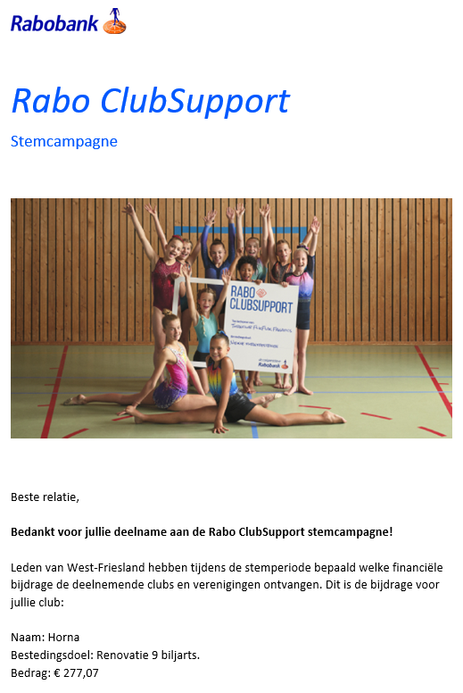 Opbrengst Rabo ClubSupport stemcampagne