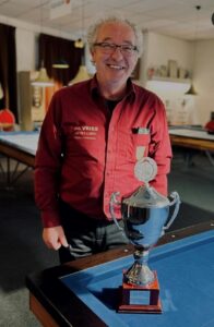 Wedstrijdleider Thea de Weerd had de 44 inschrijvers ingedeeld in 11 poules. Het aantal inschrijvingen was zeker ook te danken aan de door Bas Bouwhuis gemaakte digitale tool. Een kaderpoule, en 10 libre poules. Na de voorronden gingen de 11 poulewinnaars op voor de kwartfinale. Deze 11 werd aangevuld door ‘the best van the rest’. En dit bleek dus kaderspeler Peter Ossebaar. Achtste finale door, kwartfinale door en ook de halve finale werd gewonnen. In de finale moest hij het opnemen tegen Martin Appelman, die hier eigenlijk niet meer op gerekend had. Onder toeziend oog van de inmiddels gearriveerde nabestaanden van de naamgevers was ook Peter in deze wedstrijd niet te houden. Daarnaast maakte hij de kortste partij: 4 beurten en ook de hoogste serie van 51 (kader 38/2). Kortom, een meer dan terechte winnaar!